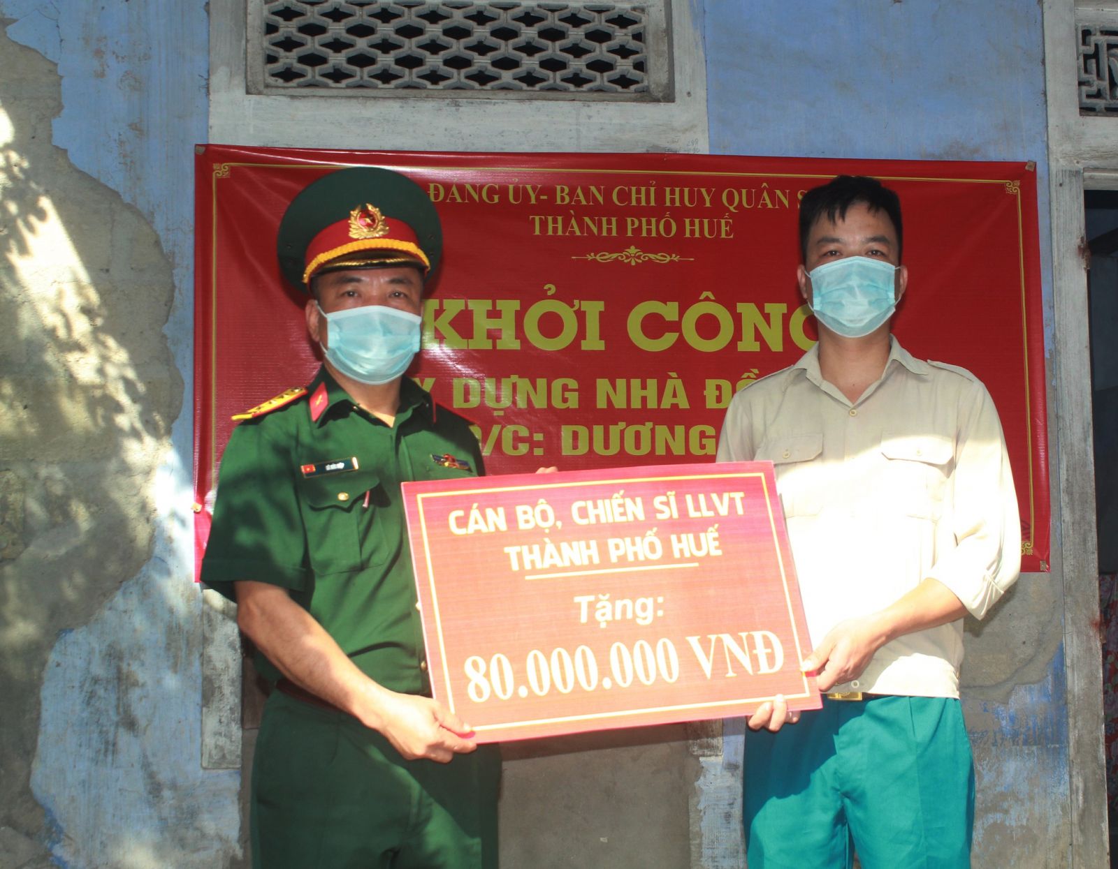 Tại lễ khởi công, toàn bộ số tiền 80 triệu đồng được Ban CHQS TP.Huế trao cho gia đình; UBMTTQ Việt Nam TP.Huế tặng 30 triệu đồng và UBMTTQ Việt Nam phường Tây Lộc tặng 5 triệu đồng. Ngoài ra, lực lượng dân quân sẽ hỗ trợ ngày công trong quá trình xây dựng. Dự kiến ngôi nhà sẽ hoàn thành trong tháng 12/2021.