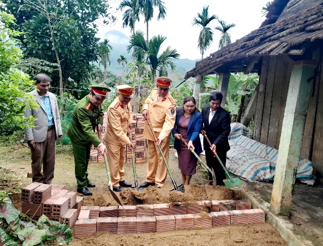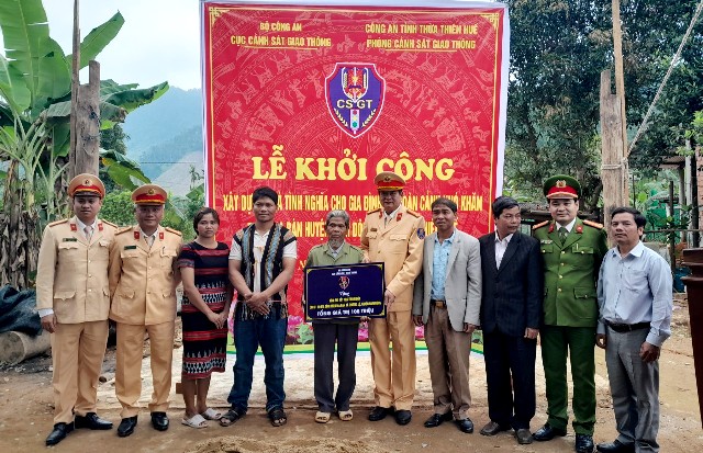 HNN.VN - Sáng 21/2, Cục CSGT Bộ Công an, Phòng CSGT Công an tỉnh Thừa Thiên Huế cùng với công an địa phương và cấp ủy, chính quyền ở cơ sở tổ chức lễ khởi công xây dựng “Nhà tình nghĩa” tặng 2 hộ gia đình diện chính sách khó khăn về nhà ở của huyện Nam Đông.