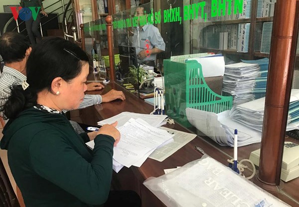 Người dân đến làm thủ tục BHXH tại BHXH Sơn Tây, tỉnh Bình Định