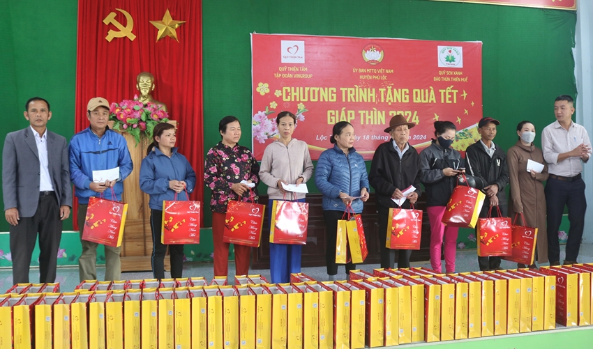 Chủ tịch Ủy ban MTTQVN huyện Phú Lộc -Nguyễn Minh cho biết, những năm qua, Quỹ Thiện Tâm và Quỹ Sen Xanh luôn đồng hành cùng địa phương mỗi dịp tết đến xuân về. Hai xã được chọn trao quà lần này đều có số lượng hộ nghèo và cận nghèo cao hơn trung bình toàn huyện; hy vọng những phần quà sẽ san sẻ phần nào khó khăn cho bà con trong thời điểm tết nguyên đán đang đến gần.