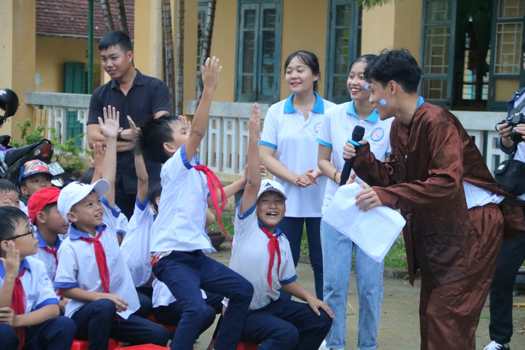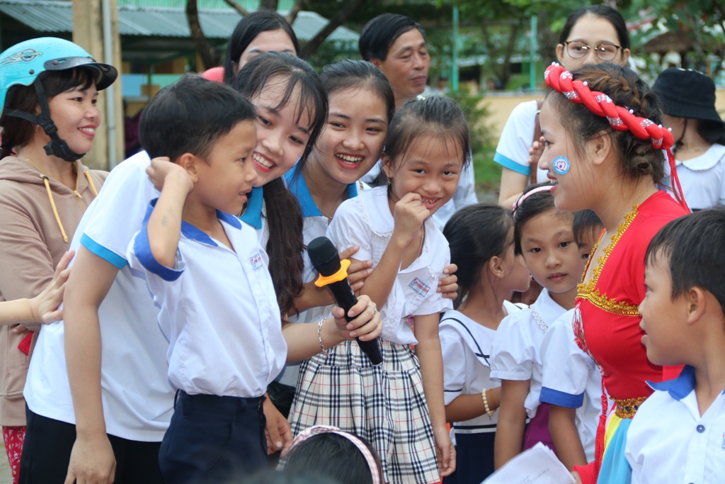 Chị Hằng cùng vui với các em học sinh