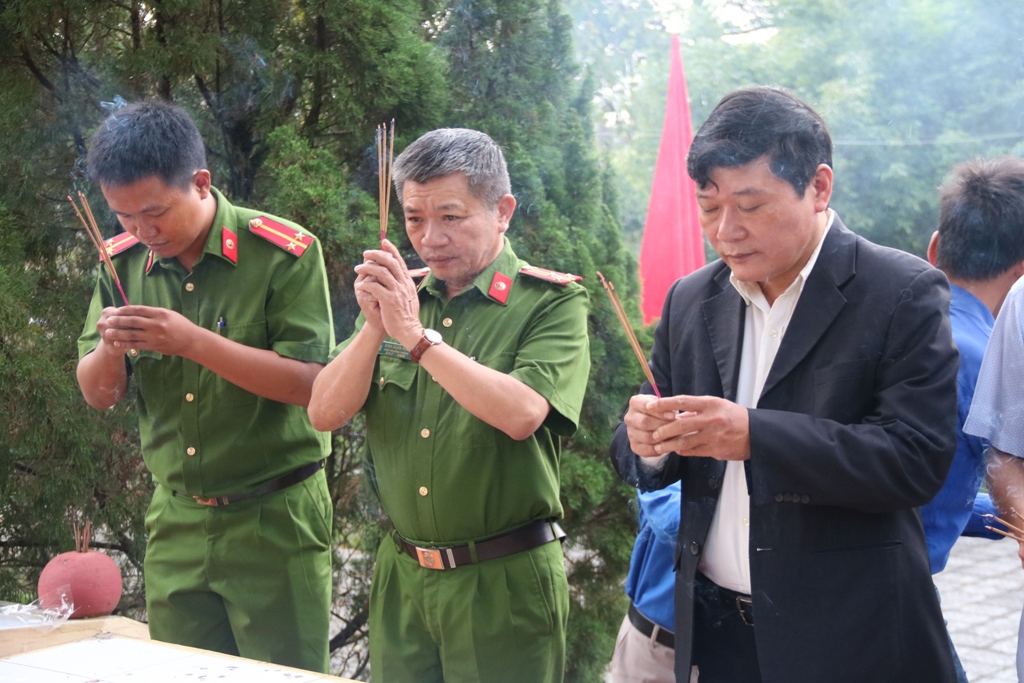 Các thành viên trong đoàn dành một phút mặc niệm tưởng nhớ công ơn các anh hùng, liệt sĩ