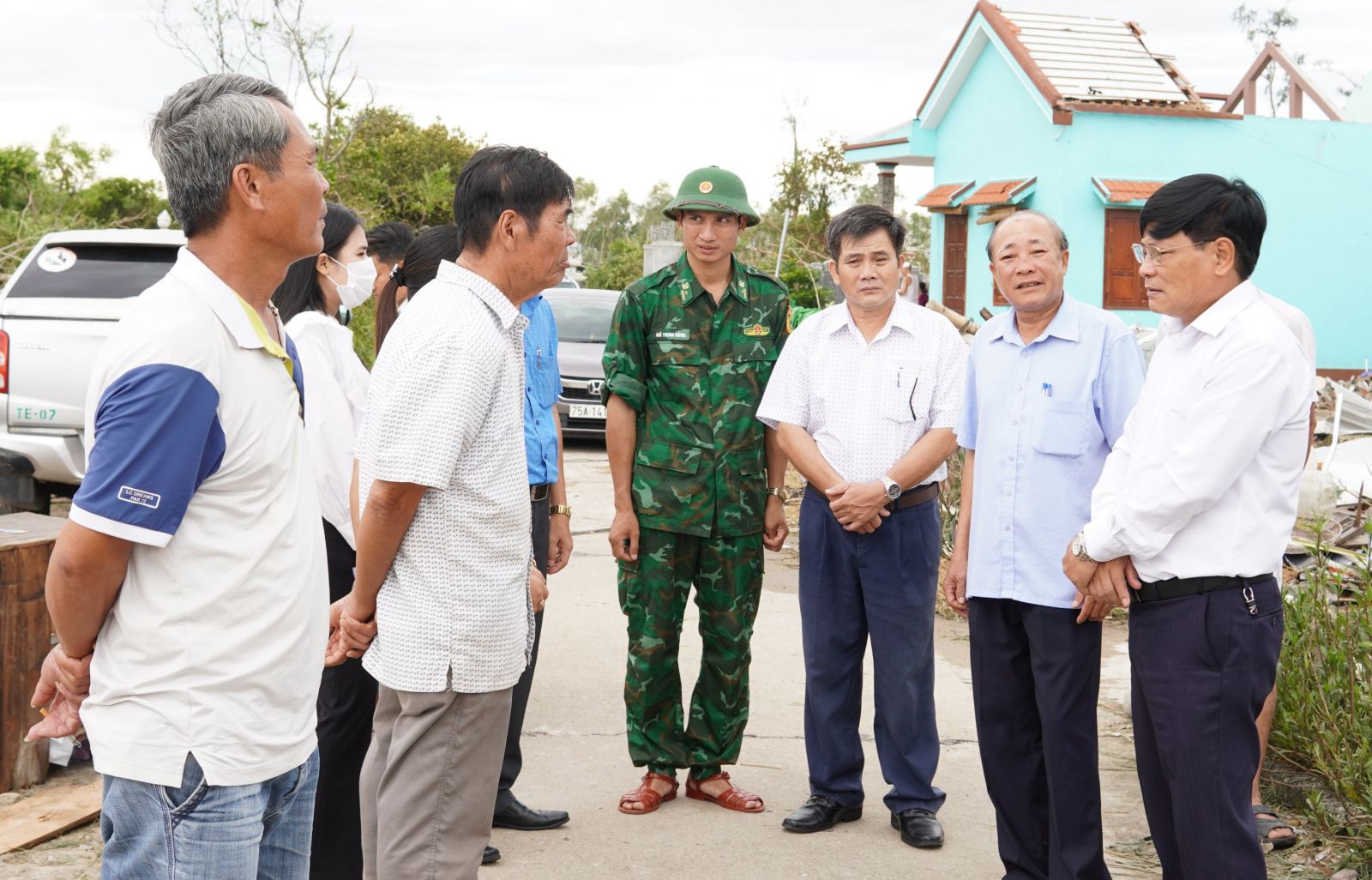 Chủ tịch Ủy ban MTTQ Việt Nam tỉnh đến thăm hỏi và động viên một số gia đình có nhà bị tốc mái và bị sập; đồng thời đánh giá cao sự hỗ trợ tích cực, kịp thời của các lực lượng chức năng và chính quyền địa phương. Được biết, hiện chính quyền huyện đã phối hợp, huy động các lực lượng dân quân tự vệ, bộ đội, công an hỗ trợ bà con dọn dẹp, lợp và sửa chữa lại những ngôi nhà bị hỏng, bị tốc mái với tinh thần tuyệt đối không để bất cứ người dân nào phải chịu đói, rét, không có chỗ ở.