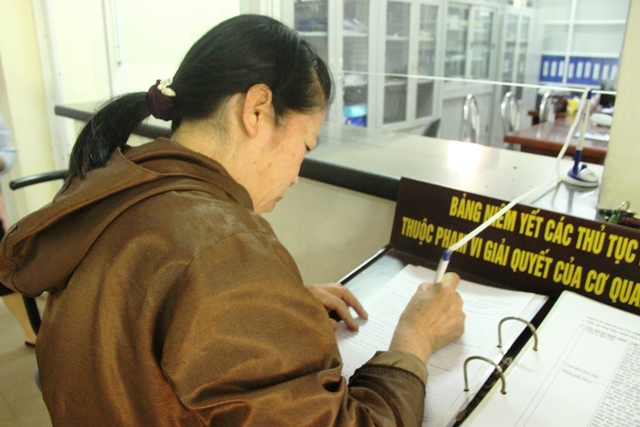 Người lao động làm thủ tục hành chính tại BHXH tỉnh. Ảnh: L.T