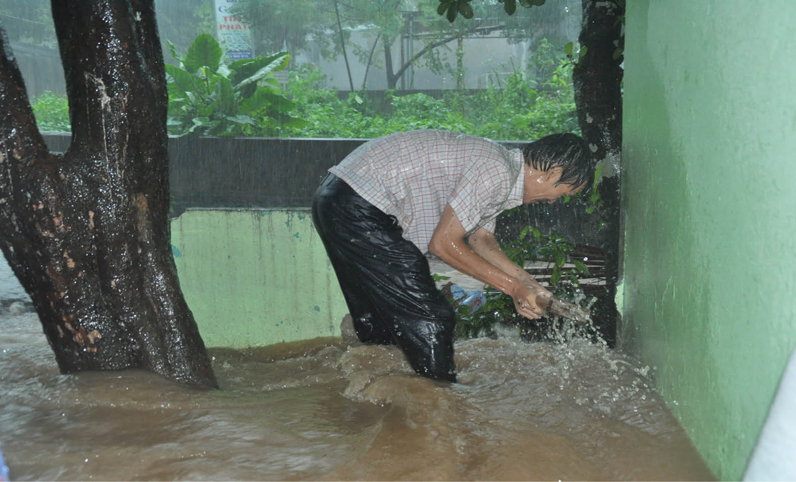 Nhiều nhà dân ở TP Huế phải đập tường cho nước thoát ra ngoài