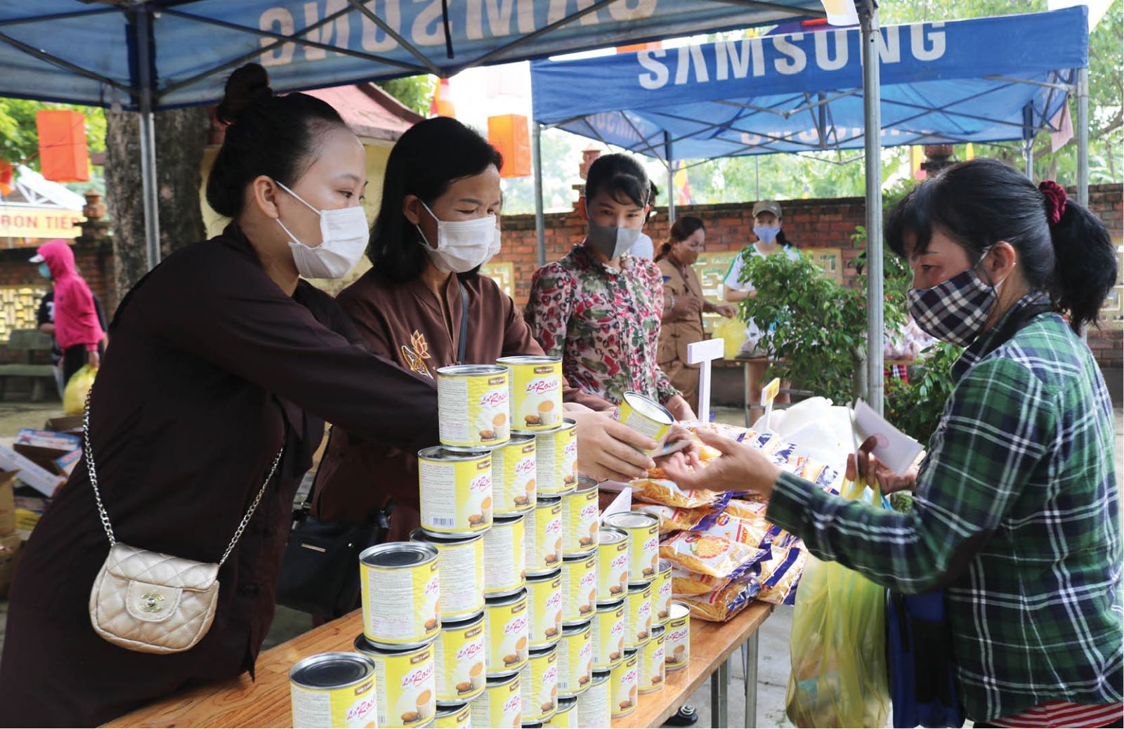 Người dân mua sắm tại Gian hàng 0 đồng do chùa Pháp Hải tổ chức