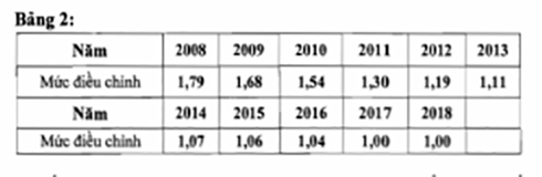 Trong đó, mức điều chỉnh tiền lương đã đóng bảo hiểm xã hội của năm tương ứng được thực hiện theo Bảng 1 dưới đây: