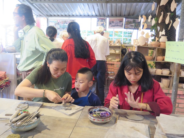 Được đón nhiều đoàn khách, được hướng dẫn cho khách cùng làm những sản phẩm hàng ngày của mình, chương trình đúng nghĩa là ngày hội cho các em khuyết tật. Hầu hết các em đều câm điếc, thiểu năng trí tuệ nhưng chứng kiến những hành động, cử chỉ, niềm vui trong những ánh mắt nụ cười có phần ngô nghê của các em, điều mà tôi cảm nhận được là các em đang rất hạnh phúc. Bận rộn nhất vẫn là bạn Nguyễn Văn Hậu, tuy bị câm nhưng Hậu rất giỏi làm gốm Raku. Hậu thay nghệ nhân Oliver Oet hướng dẫn cho khách từng chi tiết một, miệng lúc nào cũng tươi cười. Không riêng Hậu, các thành viên khác cũng vui không kém. Khi được một du khách nước ngoài nhờ hướng dẫn làm cái dĩa bằng dây điện sáng chế, em Huỳnh Công Trí vui ra mặt, em cầm tay khách hướng dẫn từng công đoàn một. Chứng kiến thái độ tự hào của em khi hướng dẫn khách làm ra một sản phẩm, người khác cũng vui lây.