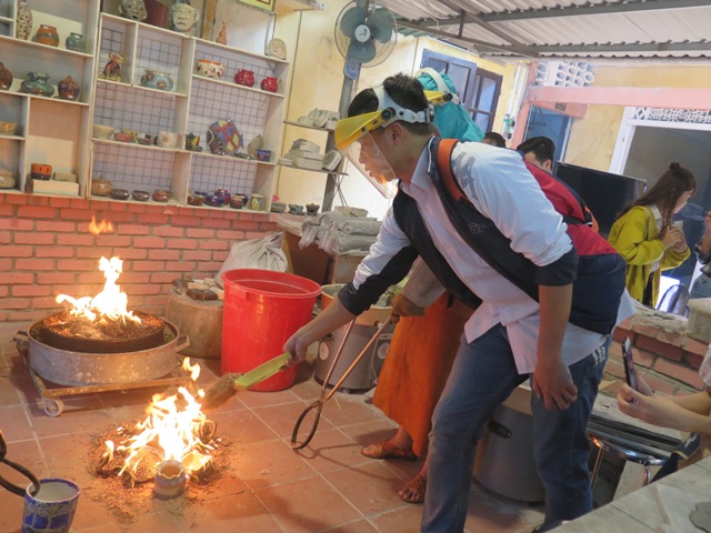 Du khách được trải nghiệm các công đoạn làm gốm Raku
