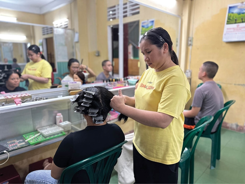 Trong căn phòng học nghề cắt tóc, trang điểm, Nguyễn Thị Lan chăm chú luyện tay nghề trên những tờ giấy báo. Sau gần hai năm theo học tại Trung tâm Dạy nghề và Tạo việc làm cho người khuyết tật, từ chỗ còn lúng túng khi cầm kéo, giờ Lan đã có thể thực hiện thành thạo các công đoạn cơ bản. Với em, học nghề không chỉ là học một kỹ năng, mà còn là cách để tự tin với chính mình.