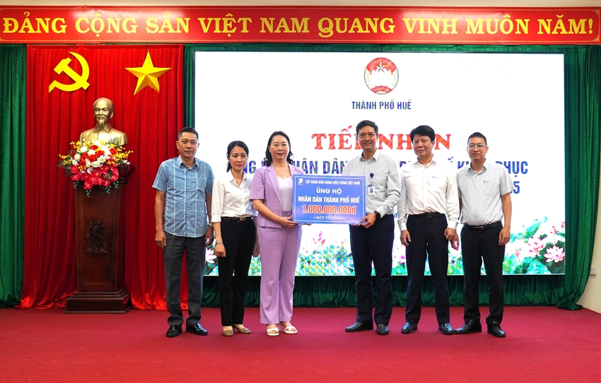 Dịp này, UVTV Thành ủy, Chủ tịch Ủy ban MTTQ Việt Nam thành phố Nguyễn Thị Ái Vân đã tiếp đoàn Tập đoàn Bưu chính viễn thông Việt Nam đến ủng hộ Nhân dân thành phố Huế 1 tỷ đồng khắc phục hậu quả mưa lũ.