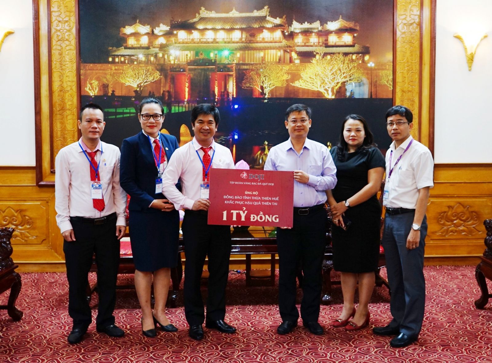 Đại diện Công ty CP Tập đoàn vàng bạc đá quý DOJI (Tập đoàn DOJI) đã ủng hộ 1 tỷ đồng cho người dân bị ảnh hưởng do bão lụt tại Thừa Thiên Huế.