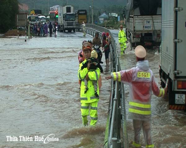 Đại úy Phan Bảo Trung, Trạm trưởng Trạm CSGT Phú Lộc còn cho biết, do mưa lớn nên những ngày qua, tuyến Quốc lộ 1A từ Km 866+200 đến Km 867 đoạn qua xã Lộc Trì (huyện Phú Lộc) bị ngập sâu 0,3 đến 0,5m. Để đảm bảo an toàn cho các phương tiện khi lưu thông qua đây, đơn vị đã huy động nhiều lượt cán bộ chiến sĩ ứng trực nhằm điều tiết giao thông, đảm bảo an toàn cho người dân và phương tiện khi lưu thông qua tuyến đường này.
