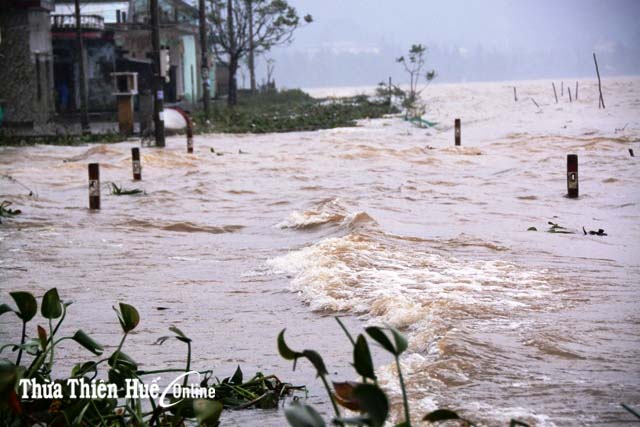 Ngoài ra, các con đường liên xã dọc theo triền sông Ô Lâu, sông Bồ thuộc địa phận của huyện Phong Điền, Hương Trà, Quảng Điền đều bị ngập từ 0,3-0,7m.