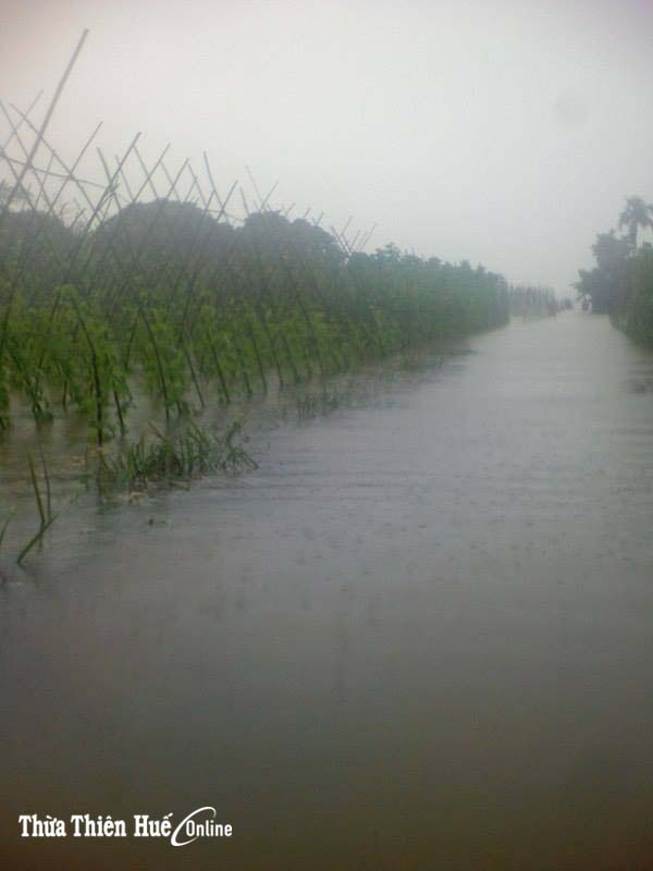 Mưa lũ bước đầu cũng gây thiệt hại về sản xuất nông nghiệp cho bà con vùng thấp trũng. Thông tin ban đầu, 115ha hoa màu tại thị xã Hương Trà bị ngập úng, khả năng thiệt hại 100 %, tập trung ở các địa phương như, phường Hương Văn, Hương An, Hương Xuân… Tại huyện Phong Điền, có khoảng 25-30ha hoa màu dọc các triền sông Ô Lâu, sông Bồ bị ngập, thiệt hại 100 %. Ông Trần Xuân Anh, Phó Trưởng phòng Kinh tế TX Hương Trà cho hay: “Từ thời điểm mưa to, hoa màu ngập nặng, gây thiệt hại cho bà con. Khả năng ngập vẫn còn kéo dài nên mức độ thiệt hại có thể 100%. Ngoài các loại hoa màu, các cây trồng ngắn ngày cũng bị ngập úng”. Ông Nguyễn Văn Cho thông tin thêm: “Hoa màu bị ngập ở Phong Điền chủ yếu là khoai lang vụ đông, rau cải vùng thấp trũng, dọc triền sông. Bước đầu chỉ ghi nhận 25-30ha. Sau lũ sẽ có con số thiệt hại cụ thể”.