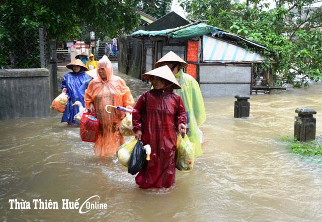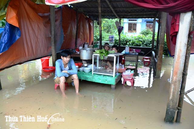 Đến nay, tình hình mưa lũ khiến 1.930 sân nhà bị ngập từ 0,2-0,3m, trong đó huyện Phong Điền 630 nhà; TX Hương Trà 1.000 nhà, huyện Phú Vang: 300 nhà. Hàng ngàn ngôi nhà bị ngập khoảng 0,2m, tập trung tại huyện Phú Lộc và Quảng Điền. Tại xã Phú Dương (huyện Phú Vang), 20 hộ dân tại khu vực có nguy cơ sạt lở bờ sông chợ Nọ được di dời đến nơi an toàn