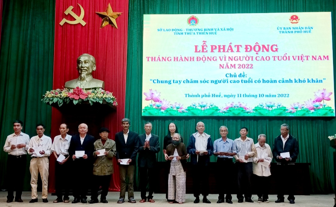Thành phố Huế hiện có hơn 30.500 người cao tuổi, trong đó có 12.106 người đang hưởng trợ cấp hàng tháng theo quy định, chiếm tỷ lệ 40%. Bên cạnh tiếp tục thực hiện tốt các chính sách chăm sóc NCT về đời sống vật chất và tinh thần, thành phố luôn nỗ lực nhằm phát huy sức mạnh đoàn kết, sáng tạo, tăng cường tiềm lực để chăm lo tốt hơn cho người nghèo, người già; đặc biệt là NCT không nơi nương tựa và có hoàn cảnh khó khăn.