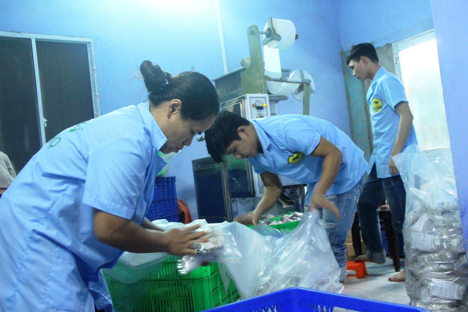 Cán bộ, công nhân viên HTX Nông nghiệp Quảng Thọ 2 đóng gói sản phẩm để đưa ra thị trường