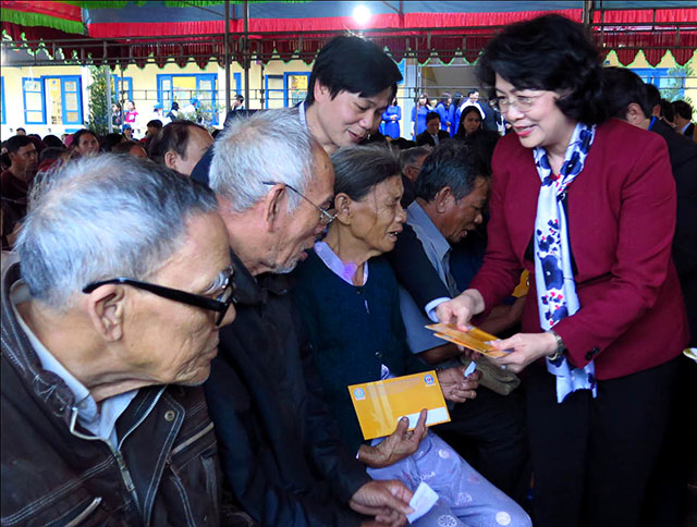 Dịp này, Phó Chủ tịch nước trao 700 triệu đồng xây dựng đường nông thôn mới và xây dựng Nhà văn hóa xã Phú Hải; trao tặng 250 phần quà tết, mỗi phần trị giá 600.000 đồng đến người khiếm thị huyện Phú Vang; trao tặng 250 phần quà cho trẻ khuyết tật TP. Huế, mỗi phần trị giá 500 nghìn đồng; trao 100 suất học bổng cho các em học sinh nghèo vượt khó của Trường THCS Phú Mậu, mỗi phần quà trị giá 600 ngàn đồng. Tổng giá trị quà tặng hơn 6 tỷ đồng do Quỹ Từ thiện Kim Oanh tài trợ.