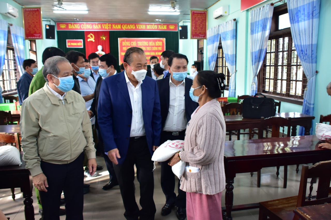 Phó Thủ tướng Thường trực - Trương Hòa Bình cùng Chủ tịch UBND tỉnh - Phan Ngọc Thọ động viên, thăm hỏi người dân