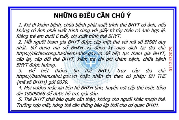 Mẫu mặt sau của thẻ bảo hiểm y tế mới