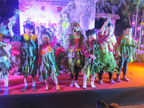 Ngoài thưởng thức tiệc ẩm thực chay, các em còn được xem chương trình biểu diễn ảo thuật, tham gia nhiều trò chơi dân gian, làm thiệp chúc mừng năm mới với nhiều màu sắc. Điểm nhấn của chương trình là liên hoan hoá trang “Sắc xuân yêu thương” với nhiều tiết mục biểu diễn thời trang do chính các em biểu diễn.