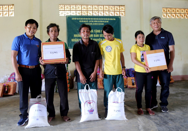 Đoàn đã trao tặng 47 suất quà, mỗi suất trị giá 300 nghìn đồng đến với các hộ gia đình và trao tặng 50 túi xách cùng vở, viết cho các học sinh.