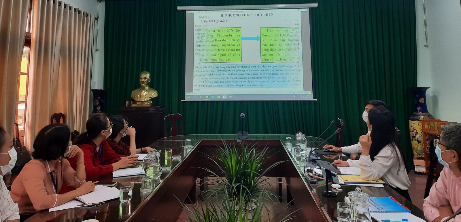 Hướng dẫn quy trình chi trả trợ cấp ưu đãi NCC qua bưu điện cho các cán bộ cấp xã, huyện tại điểm cầu văn phòng Sở LĐTB&XH