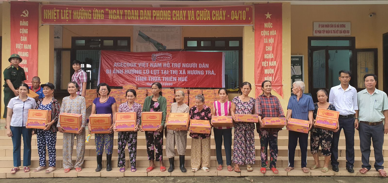* Thông qua vận động của UBMTTQVN thị xã Hương Trà, Công ty Acecook Việt Nam ủng hộ thị xã Hương Trà 2.500 thùng mỳ tôm, với tổng trị giá 230 triệu đồng nhằm hỗ trợ người dân địa phương vượt qua khó khăn do đợt mưa lũ lịch sử vừa qua.