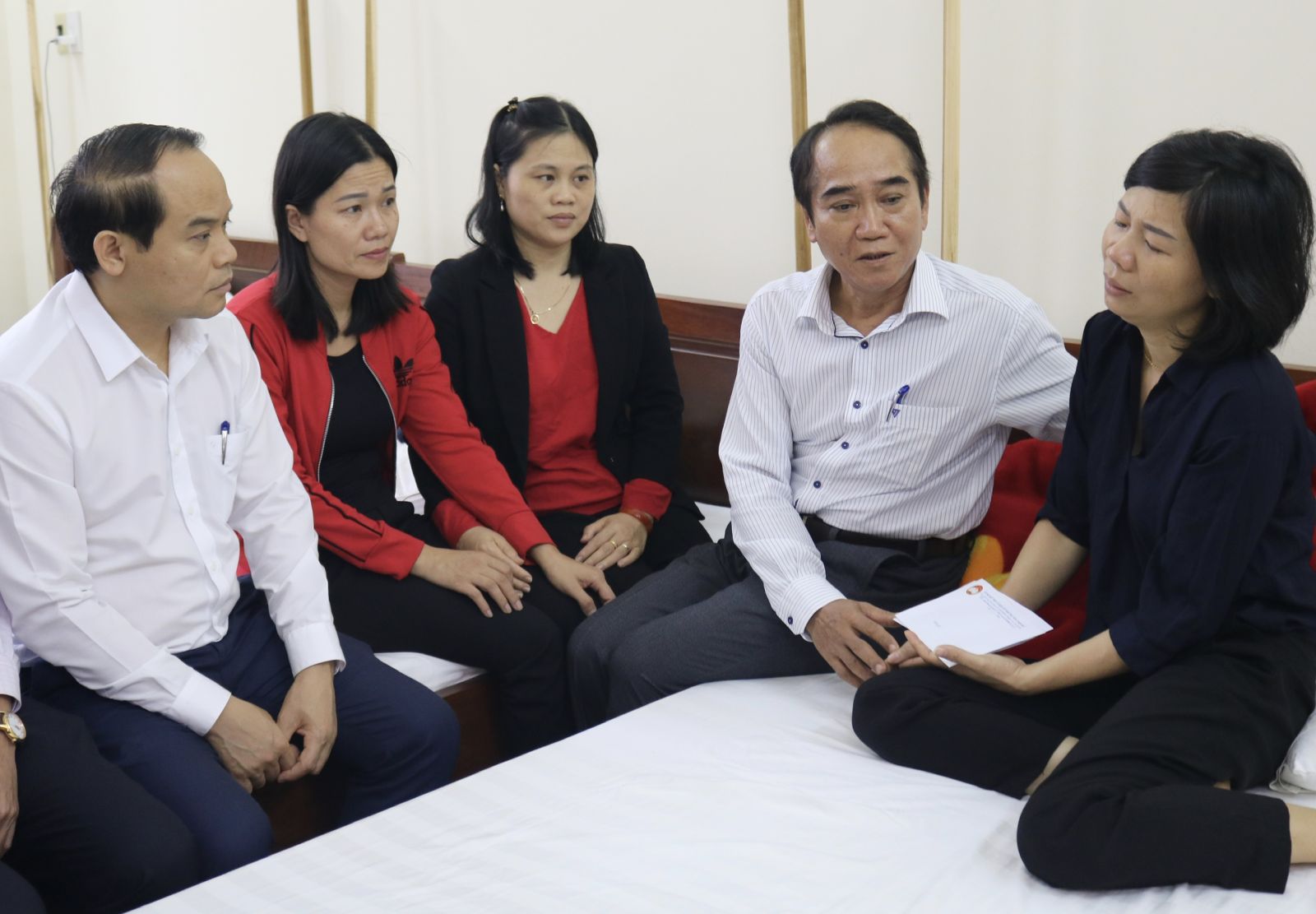 Phó Bí thư Thường trực Tỉnh ủy Bùi Thanh Hà và Phó Bí thư Tỉnh ủy Nguyễn Quốc Đoàn chia sẻ mất mát với thân nhân và gia đình. Clip: Minh Nguyên