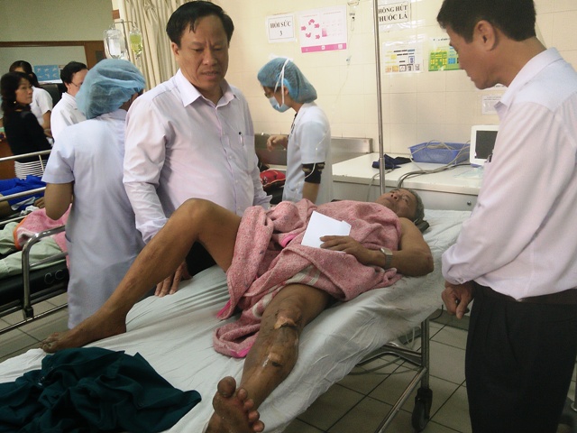 Thăm và hỗ trợ ngư dân bị tai nạn do nổ ắc quy trên thuyền cá