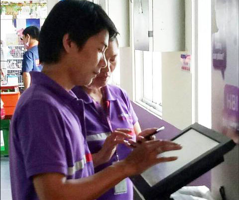 Công nhân Công ty HBI Phú Bài kiểm tra lương thưởng trên máy tính