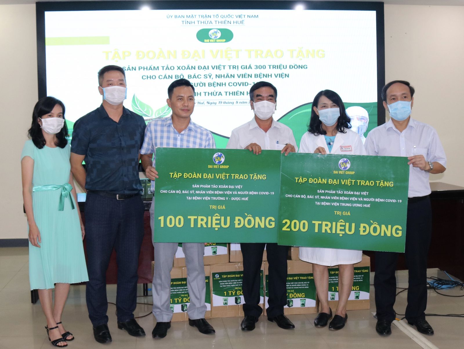 Cụ thể, Tập đoàn Đại Việt trao tặng sản phẩm tảo xoắn của tập đoàn cho cán bộ nhân viên, đội ngũ y bác sĩ và bệnh nhân nhiễm COVID - 19 với tổng trị giá 300 triệu đồng theo giá niêm yết bán hàng. Trong đó, Bệnh viên Trung ương Huế tiếp nhận số hàng hóa trị giá 200 triệu đồng và Bệnh viện trường đại học Y Dược Huế là 100 triệu đồng.