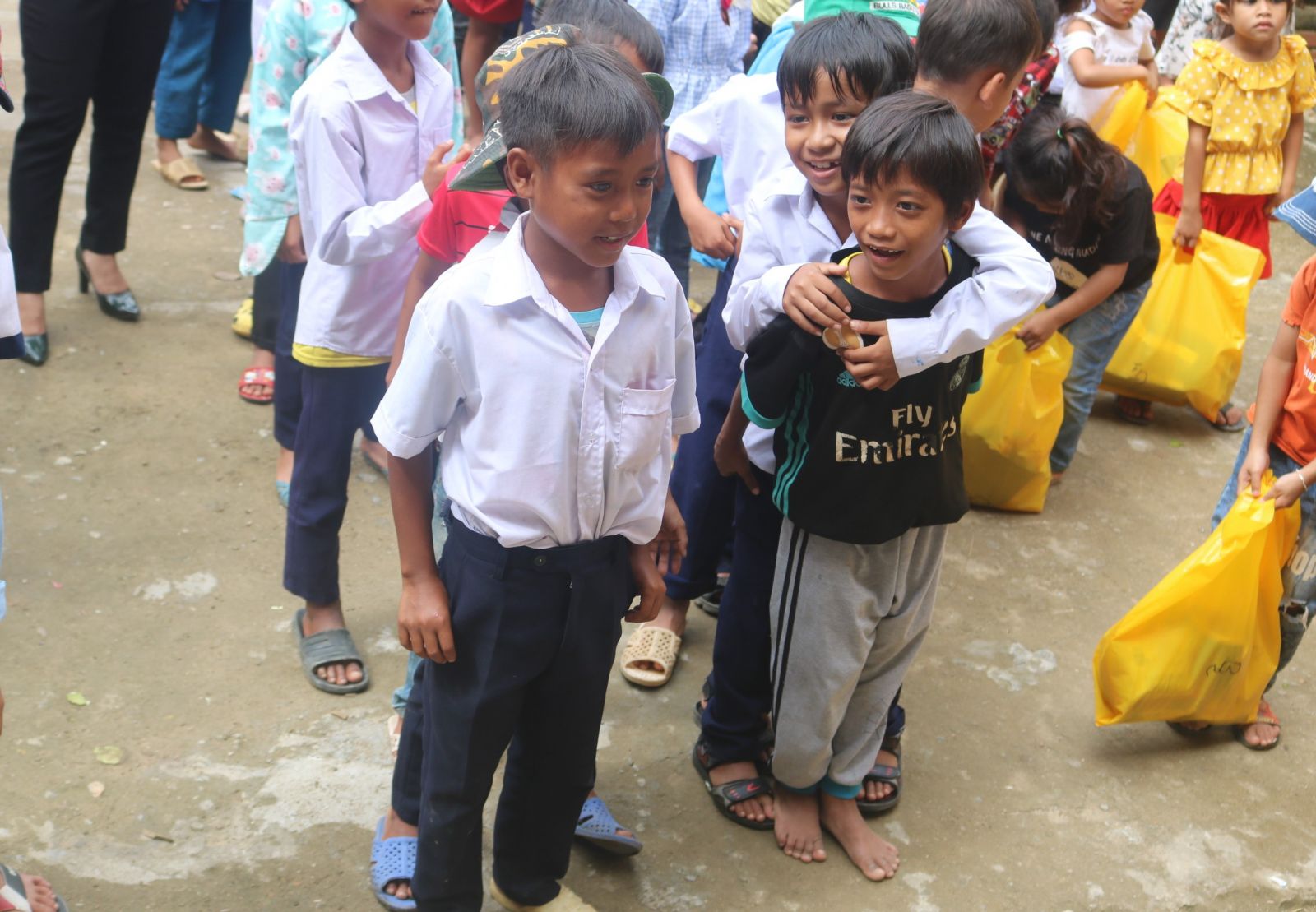 Các thành viên trong đoàn gửi tặng các em những món quà ý nghĩa