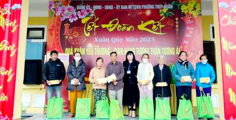 Dịp này, TP. Huế trao tặng 32 suất “Qùa xuân yêu thương” đến các hộ nghèo trên địa bàn; các chùa Từ Lâm, Quang Minh, Thiên Hương, Bảo Lâm, Diệu Viên… đã hỗ trợ kinh phí tổ chức Gian hàng tương thân tương ái cho 112 hộ nghèo, hộ cận nghèo trên địa bàn phường.