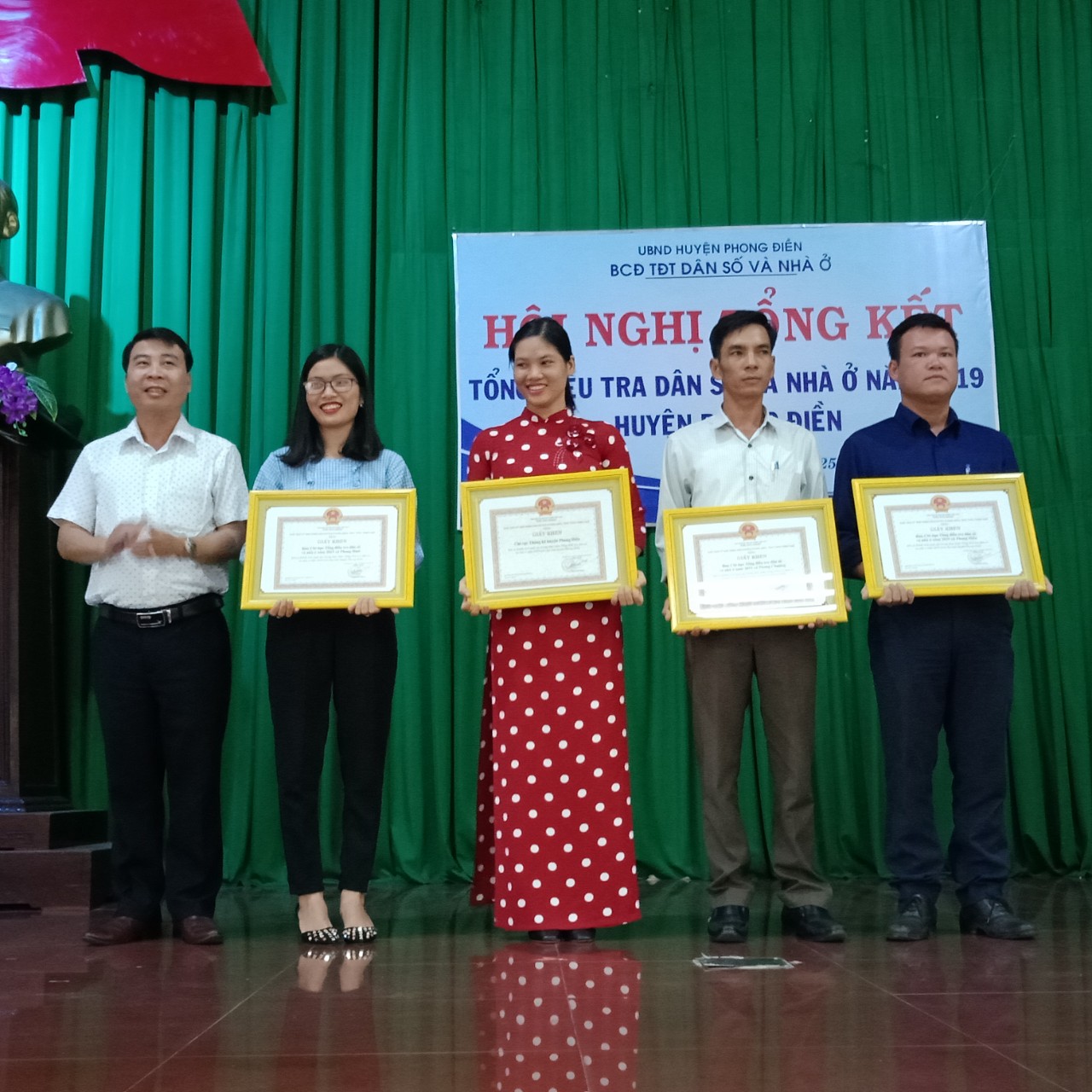 Dịp này, Cục trưởng Cục Thống kê tỉnh đã tặng giấy khen cho 3 tập thể, 11 cá nhân và UBND huyện Phong Điền tặng giấy khen cho 4 tập thể và 6 cá nhân đã có thành tích xuất sắc trong thực hiện cuộc tổng điều tra dân số và nhà ở năm 2019.