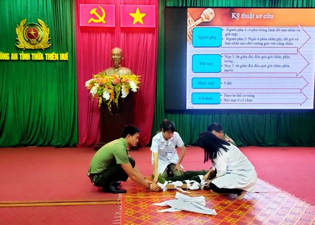 Tại lớp tập huấn, gần 200 học viên là cán bộ, chiến sĩ, công nhân viên lao động hợp đồng thuộc công an các đơn vị, địa phương trong tỉnh đã được các báo cáo viên tập huấn sơ cứu người bị bỏng, kỹ thuật băng bó vết thương, sơ cứu gãy xương.