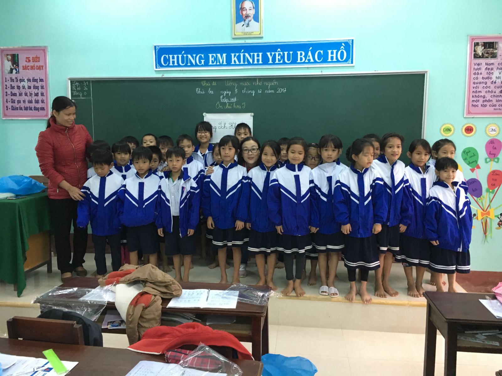 Những chiếc áo ấm đồng phục của độc giả NetCodo dành tặng học sinh tiểu học Quảng Thọ 1