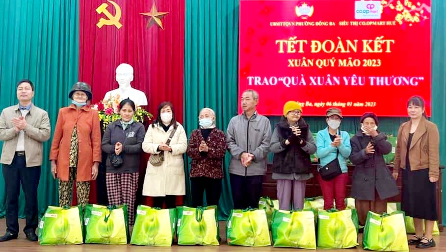 Chương trình trao quà “Xuân yêu thương” là hoạt động nằm trong chuỗi “Tết đoàn kết” do phường Đông Ba phát động nhằm trao quà cho các gia đình chính sách, hộ nghèo, cận nghèo và gia đình có hoàn cảnh khó khăn trên địa bàn phường đón tết cổ truyền Quý Mão 2023.
