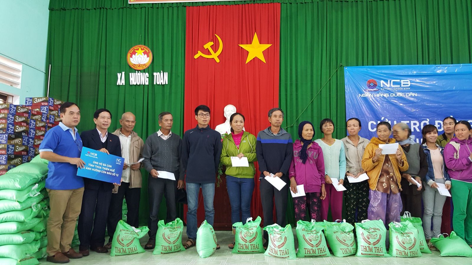 Mỗi suất quà gồm gạo và tiền mặt trị giá 500 ngàn đồng với tổng số tiền là 200 triệu đồng. Theo đại diện lãnh đạo ngân hàng NCB chi nhánh Huế, toàn bộ kinh phí ủng hộ đồng bào bị thiên tai của đơn vị được trích từ quỹ phúc lợi của toàn ngân hàng với mong muốn góp phần giúp người dân khắc phục khó khăn, sớm ổn định cuộc sống.