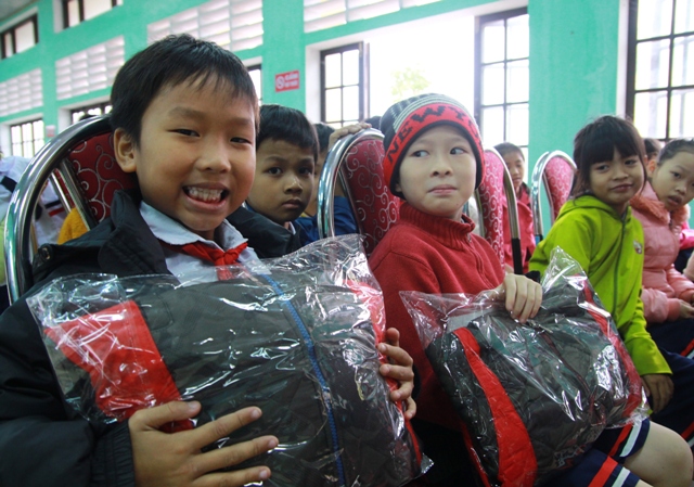 Niềm vui của các em học sinh nghèo, có hoàn cảnh khó khăn khi được nhận quà