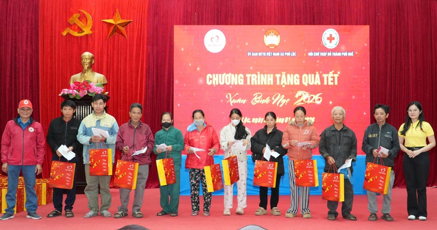HNN.VN - Sáng 23/1, Hội Chữ thập đỏ thành phố Huế phối hợp với Ủy ban Mặt trận Tổ quốc Việt Nam các xã: Phú Lộc, Vinh Lộc tổ chức chương trình trao tặng quà tết xuân Bính Ngọ 2026 cho các hộ nghèo, cận nghèo, hộ gia đình có hoàn cảnh khó khăn, bị thiệt hại nặng bởi thiên tai trong năm 2025 trên địa bàn xã Phú Lộc và Vinh Lộc. Chương trình được thực hiện từ nguồn hỗ trợ của Quỹ Thiện Tâm - Tập đoàn Vingroup.
