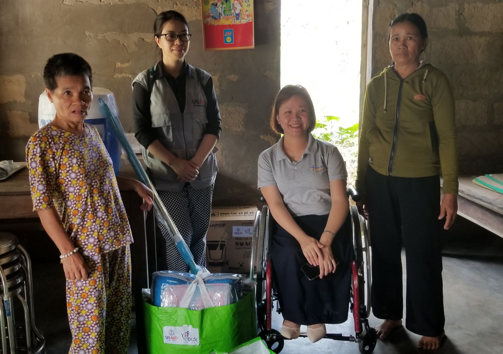 Đại diện USAID, ACDC trao quà và bình lọc nước cho gia đình bà Hồ Thị Gừng, người khuyết tật ở TDP Đức Lam Trung, thị trấn Phú Đa (Phú Vang)