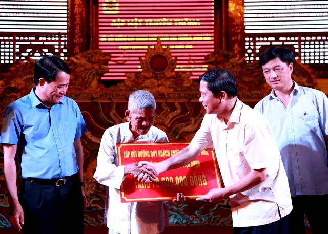 HNN.VN - Ngày 25/8, tại TP. Huế, nhân buổi gặp mặt truyền thống lớp bồi dưỡng quy hoạch chức danh Cục trưởng và Giám đốc khoá I - Học viện An ninh Nhân dân, đại diện ban cán sự và các học viên lớp bồi dưỡng đã trao 70 triệu đồng hỗ trợ xây dựng “Nhà tình nghĩa” tặng gia đình ông Trần Văn Tra, trú tại xã Phú Thượng (Phú Vang).