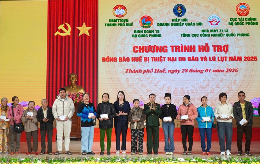 Tại chương trình, Hiệp hội Doanh nghiệp Quân đội trao quà cho 10 gia đình thương binh, liệt sĩ, 17 Mẹ Việt Nam Anh hùng trên địa bàn TP. Huế và 600 suất quà (trị giá 1 triệu đồng/suất) cho các hộ khó khăn tại các phường, xã: Thuận Hóa, An Cựu, Phú Hồ, Phong Thái, Phú Lộc, A Lưới 4. Các phần quà tuy không lớn về vật chất nhưng thể hiện sự quan tâm, sẻ chia, góp phần giúp bà con đón tết Bính Ngọ 2026 ấm áp, nghĩa tình.
