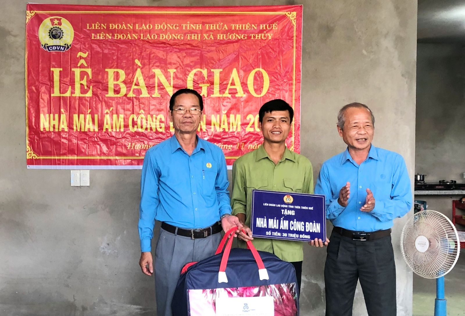 Tại lễ bàn giao, LĐLĐ tỉnh, LĐLĐ TX. Hương Thủy, chính quyền P. Thủy Lương trao tặng anh Đoàn Văn Mão một số nhu yếu phẩm, vật dụng thiết yếu phục vụ sinh hoạt hàng ngày.