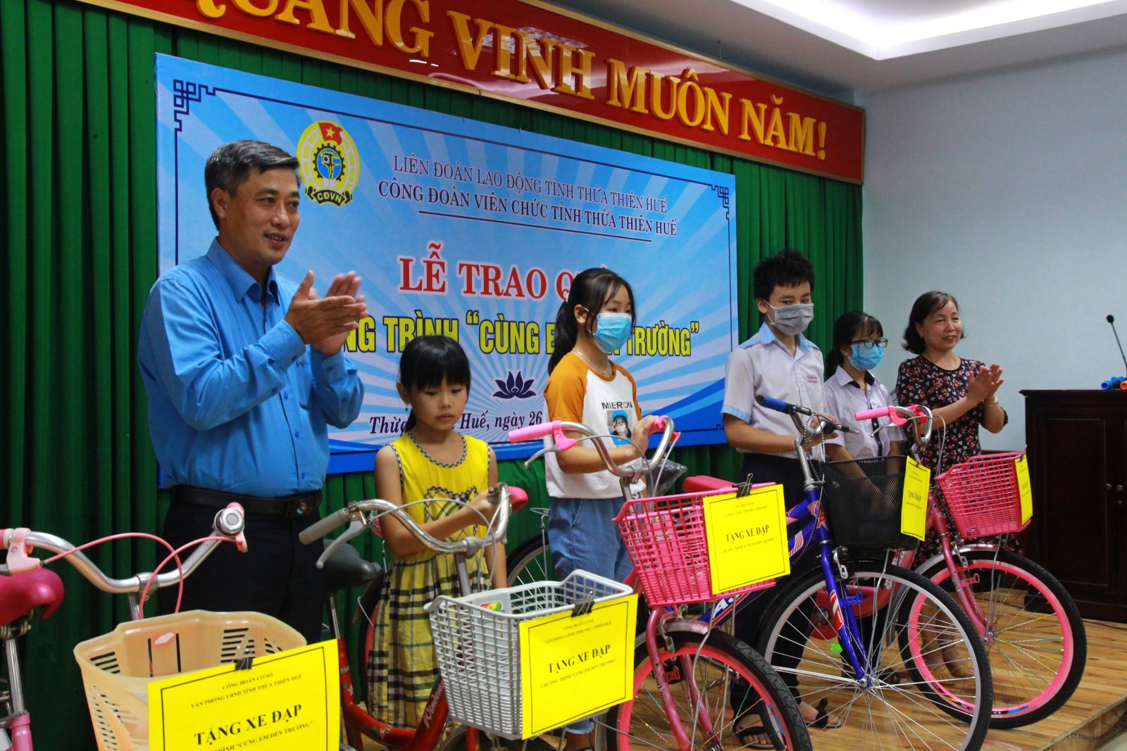 Theo đó, CĐVC tỉnh đã trao 4 chiếc xe đạp và 300 cuốn vở cho con của đoàn viên công đoàn, người lao động Hội Người mù tỉnh; 2 xe đạp và 700 cuốn vở cho con của đoàn viên công đoàn, người lao động Công đoàn cơ sở (CĐCS) Sở Văn hóa – Thể thao; 1.200 cuốn vở cho con của đoàn viên công đoàn, người lao động CĐCS Sở Lao động -Thương binh và Xã hội tỉnh, CĐCS Cơ quan Tỉnh đoàn, CĐCS Hội LHPN tỉnh.
