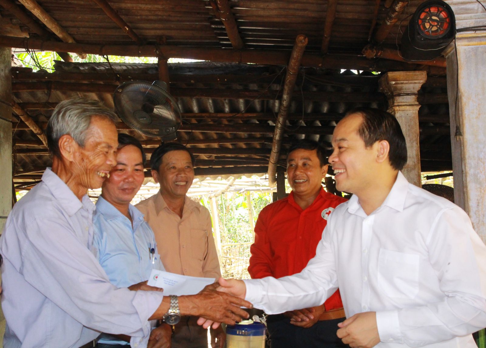 Ngoài trao các phần quà, Phó Bí thư Tỉnh ủy Nguyễn Quốc Đoàn mong các gia đình nỗ lực cố gắng vượt qua khó khăn, sớm ổn định cuộc sống.