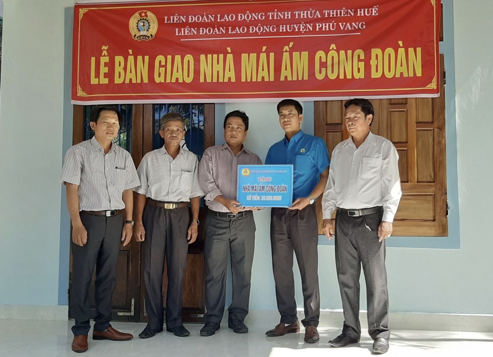 Sáng cùng ngày, LĐLĐ huyện Phú Vang còn tiến hành bàn giao nhà “Mái ấm Công đoàn” cho anh Đoàn Minh Hùng, đoàn viên công đoàn cơ sở UBND xã Vinh Hà. Với số tiền 30 triệu đồng do chương trình hỗ trợ, anh Hùng đã vay mượn thêm gia đình, người thân để khởi công xây dựng một mái nhà kiên cố. Sau 2 tháng thi công, đến nay ngôi nhà đã hoàn thiện và đưa vào sử dụng.