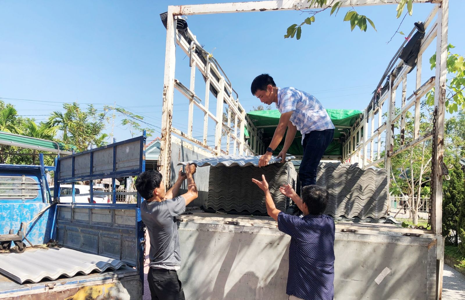 Vận chuyển lấm lợp fipro xi măng đến bà con có nhà bị tốc mái ở P. Thủy Châu